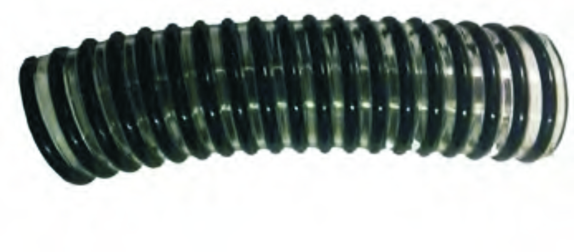 Highly flexible, FDA formulated clear, smooth, PVC live well hose with black helix.
